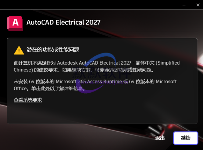 若出现以下提示,请使用安装包里面的提供的“AccessSetup.exe”安装文件,没有则忽略