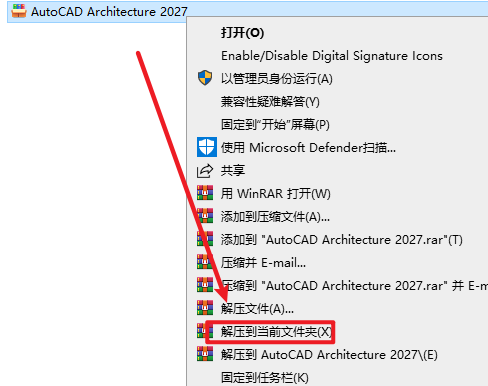 1.选中下载的安装包,然后右键选择“解压到当前文件夹”