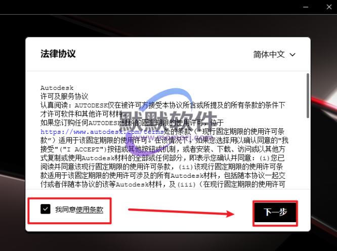 3.勾选“我同意…”,点击“下一步”