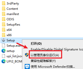 2.打开刚刚解压的文件夹,双击打开“Setup”文件夹,选中“Setup”安装程序,右键选择“以管理员身份运行”