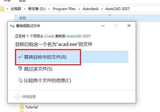 7.返回安装文件夹,双击打开“Crack”文件夹,复制 “acad.exe”文件