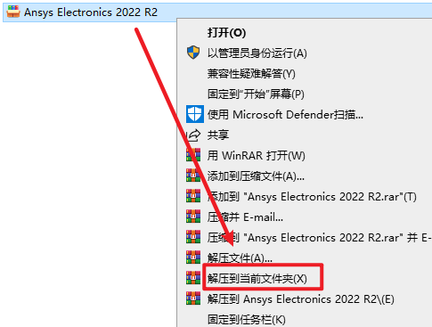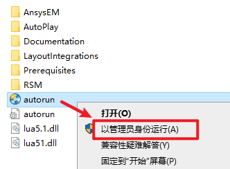 2.打开刚刚解压的文件夹,双击打开“EANSYS.2022.R2.ELECTRONICS”文件夹,选中“autorun”文件,右键选择“以管理员身份运行”