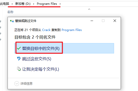 19.粘贴复制的文件到该路径下,选择“替换目标中的文件”