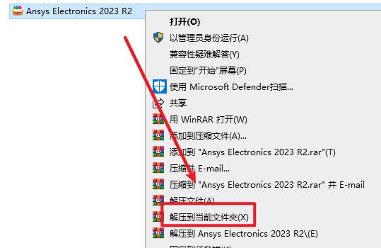 1.选中下载的安装包,然后右键选择“解压到当前文件夹”