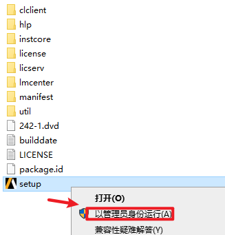 2.打开刚刚解压的文件夹,双击打开“ANSYSLICMAN_2024R2_WINX64”文件夹,选中“setup”右键选择“以管理员身份运行”
