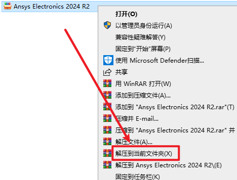 1.选中下载的安装包,然后右键选择“解压当当前文件夹”