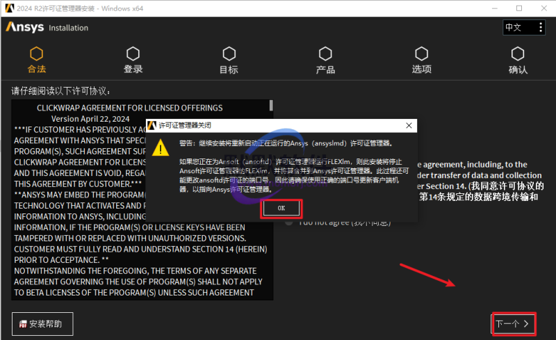 温馨提示:如果没有安装ANSYS License Manager 2024R2用户,依次按教程进行安装。如果已安装ANSYS License Manager 2024R2的用户请直接从第21步开始进行安装