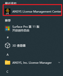 13.开开始菜单中找到并打开“ANSYS License Manager Center“