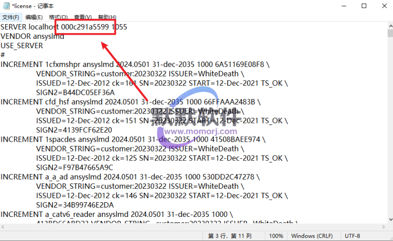 15.返回安装文件夹,双击打开“Crack”文件夹,打开“license.txt”文本文件,在文本中找到“ANY”