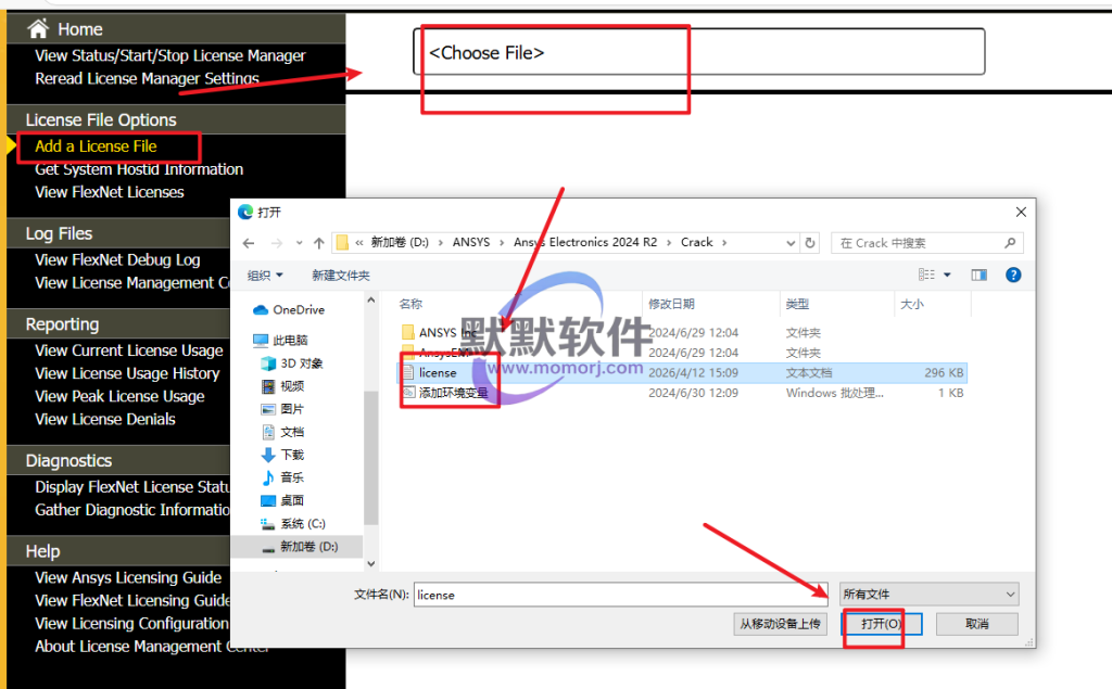 18.点击”Add a License File” ,点击”Choose File” ,浏览选择上一步保存后的”license.txt” 文件,点击 “打开”