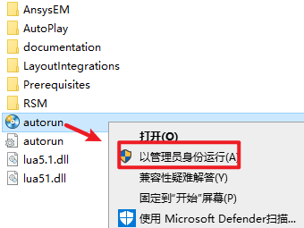 22.找到并选中autorun.exe”文件,右键选择“以管理员身份运行”