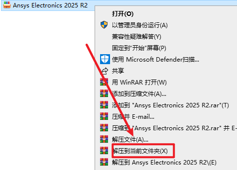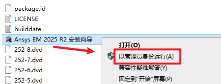 2.打开刚刚解压的文件夹,双击打开“Ansys EM 2025 R2”文件夹,选中“Ansys EM 2025 R1 安装向导”右键选择“以管理员身份运行”