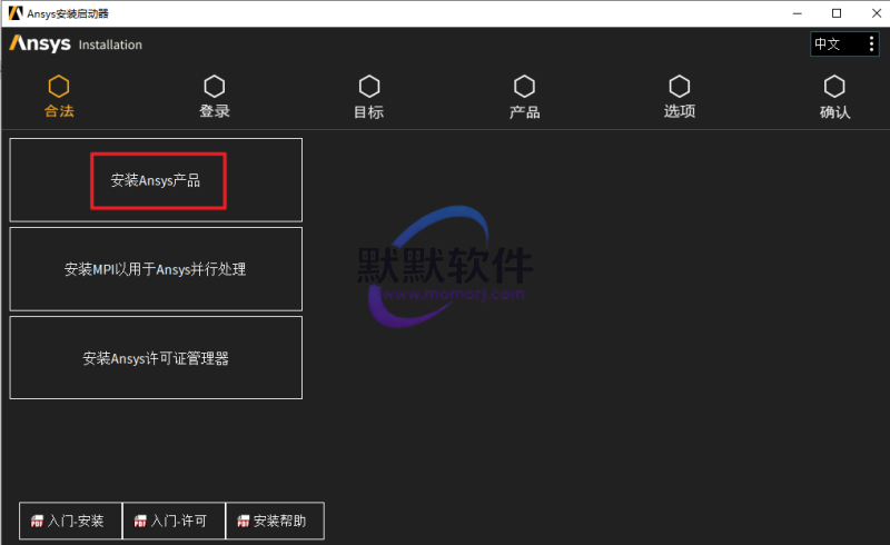 4.点击“安装ANSYS产品“