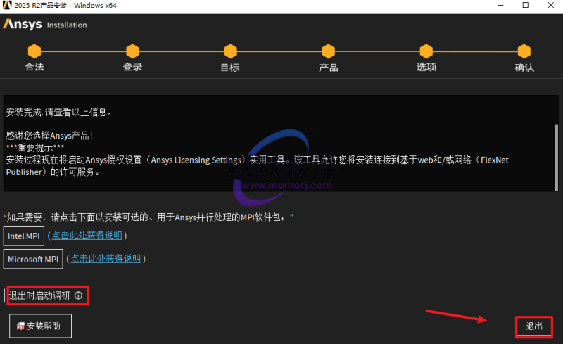 12.取消勾选“退出时启动调研”(蓝色字变成白色即为取消),点击“退出”