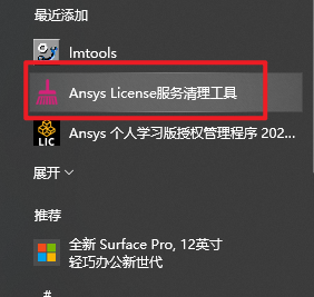 20.如果之前有安装了旧版本的Ansys授权管理服务,点击“开始“菜单栏,点击展开“Ansys PLE Licensing 2025 R2“,点击打开“Ansys服务清理工具“,可以使用这个工具卸载清理授权管理服务