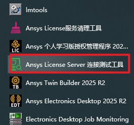 24.在开始菜单栏中点击展开“Ansys PLE Licensing 2025 R2“,点击打开“Ansys License Server连接测试工具“