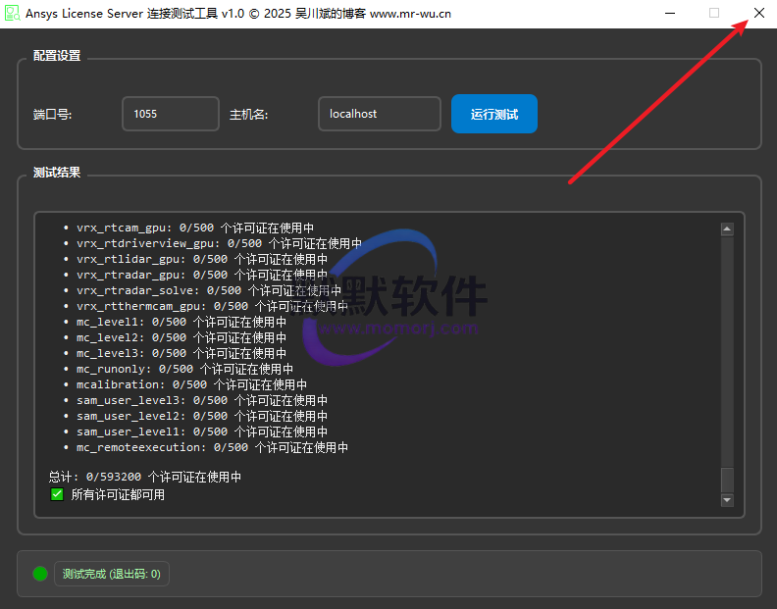 26.提示“所有许可证都可用”表示正常, 点击右上角的关闭