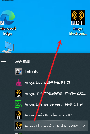27.在开始菜单栏中找到“Ansys Electronics Desktop 2025 R2“软件,键拖拽到桌面上即可创建桌面快捷方式