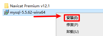 2.打开解压好的文件夹,选中“mysql-5.5.62-winx64”右键选择“安装”