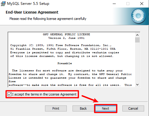 4.勾选“I accept the license terms”,点击“Next”