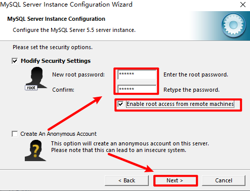 19.设置密码,记住这个密码等下要用,勾选“Enable root access···“,点击“Next”
