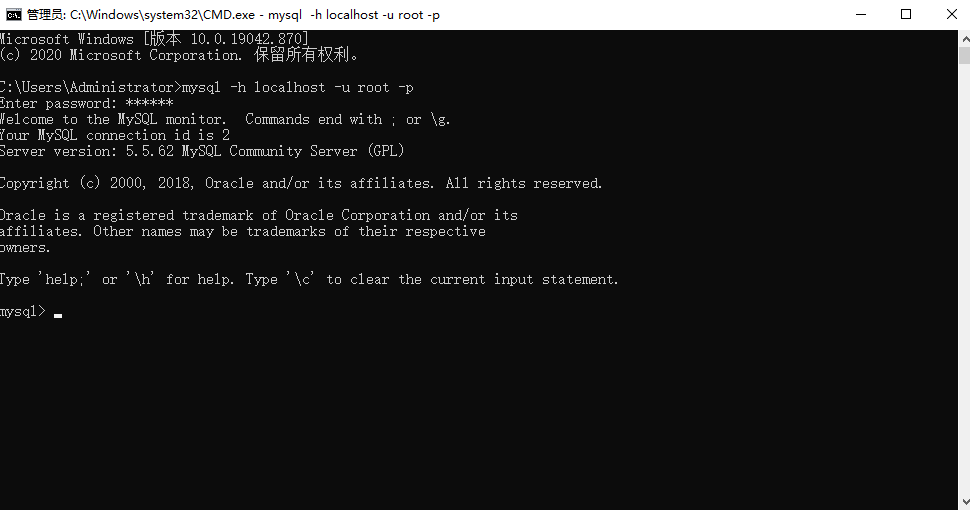 23.输入:mysql –h localhost –u root -p,然后按回车键