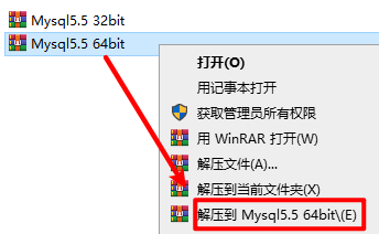1.选中下载的安装包,右键选择“解压到 Mysql5.5 64bit”